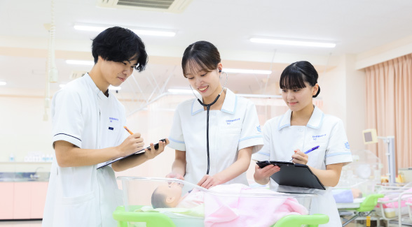 The Nihon Institute of Medical Science provides students with knowledge and theory as well as many opportunities to put what they have learned into practice, thus cultivating independent thinking and decision-making skills. We also emphasize Team Medical Care. Students come to understand the functions and roles of other medical professionals, and are challenged to consider how best to work collaboratively. In addition, students can qualify to take the national certification examination to become a public health nurse*, a profession that focuses on maintaining and improving public health and sanitation.