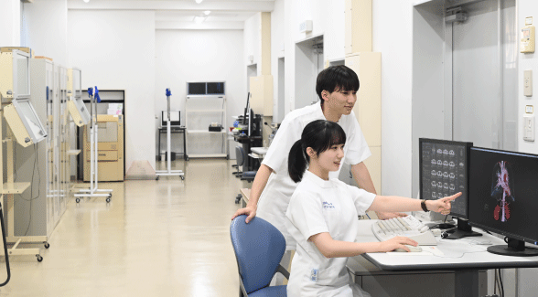 Radiological technologists provide radiological diagnostics and therapies that are essential to modern medical care. We aim to develop radiological technologists who possess cutting-edge expert knowledge and skills in step with the latest advances in medicine, as well as the ability to offer emotional support to patients.