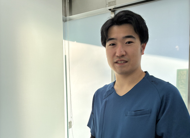 小学生のころから肩・肘の怪我や神経障害を抱えていて整形外科に長い期間通院していたことがきっかけでした。その時に多くの人が暗い表情から明るい表情に徐々に変化していたことや多くの人から「ありがとう」と感謝をされていたことから、自分もつらい経験を持っているからこそ理学療法士になり、多くの人を笑顔にして元の生活に戻れるようにすることとスポーツ復帰をさせられるようになりたいと思ったからです。