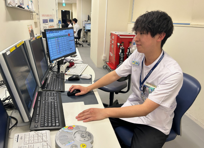 心肺停止で運ばれてくる症例の患者様を医師、看護師、臨床工学技士、放射線技師などチームで患者様を救うことでやりがいを感じます。