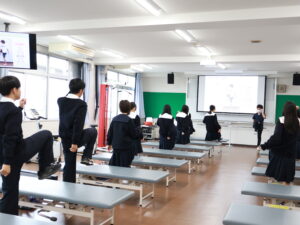 理学療法士の仕事内容や、患者さんに対する健康維持のためのトレーニングを紹介し、その中で高齢者向けの効率の良い筋力トレーニングを実践していただきました。「筋トレがきつかった」「高齢者にも負担がかかりすぎない筋トレを教えてもらった」などの感想がありました。
