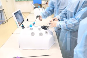 臨床工学技士が行う業務内容や、操作する医療機器の説明をした後に、ベッドサイドモニターや硬性鏡の操作体験をしていただきました。